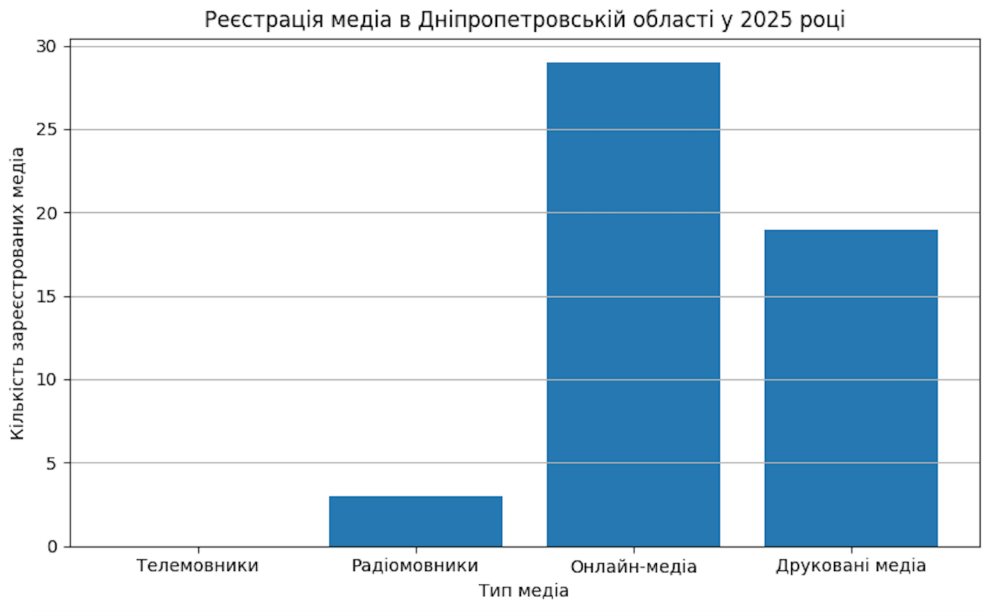 Реєстрація медіа в Дніпропетровській області у 2025 році. Діаграма: Катерина Лисюк