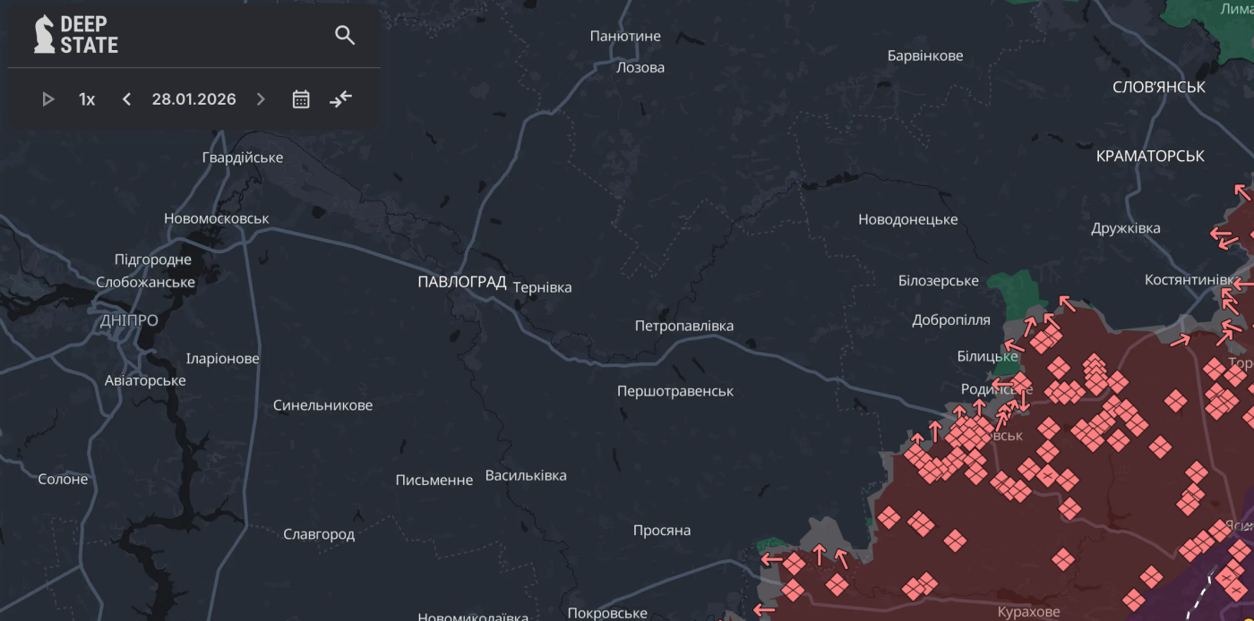Частина Дніпропетровської області на карті Deep State. Скрин: Deep State