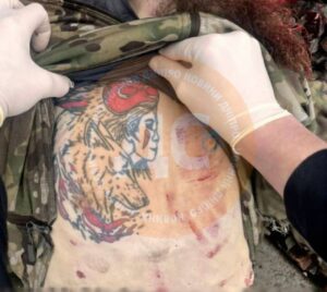 - На тілі — татуювання у вигляді вовка та дівчини.
