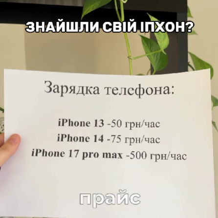 Прайс на зарядку телефонів розмістили в своєму Instagram-профілі. Він виглядає так: