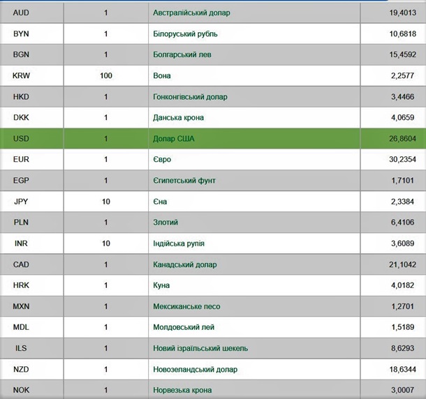 Национальный банк Украины на среду, 24 ноября, установил официальный курс отечественной валюты к американскому доллару на уровне 26,86 гривен за доллар. Об этом свидетельствуют данные на сайте регулятора.