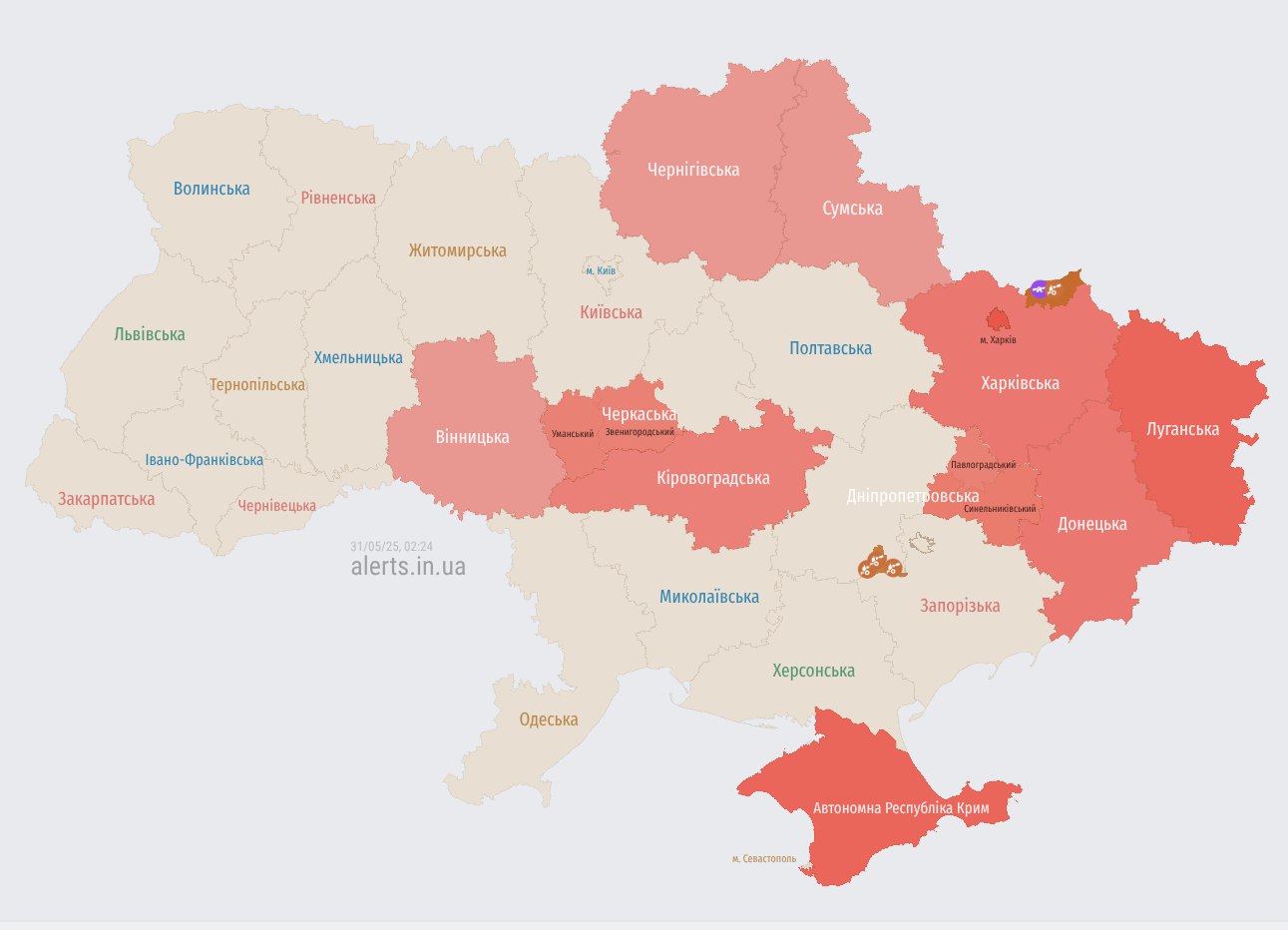 Об этом сообщает РБК-Украина со ссылкой на Воздушные силы ВСУ и Карту воздушных тревог Украины.